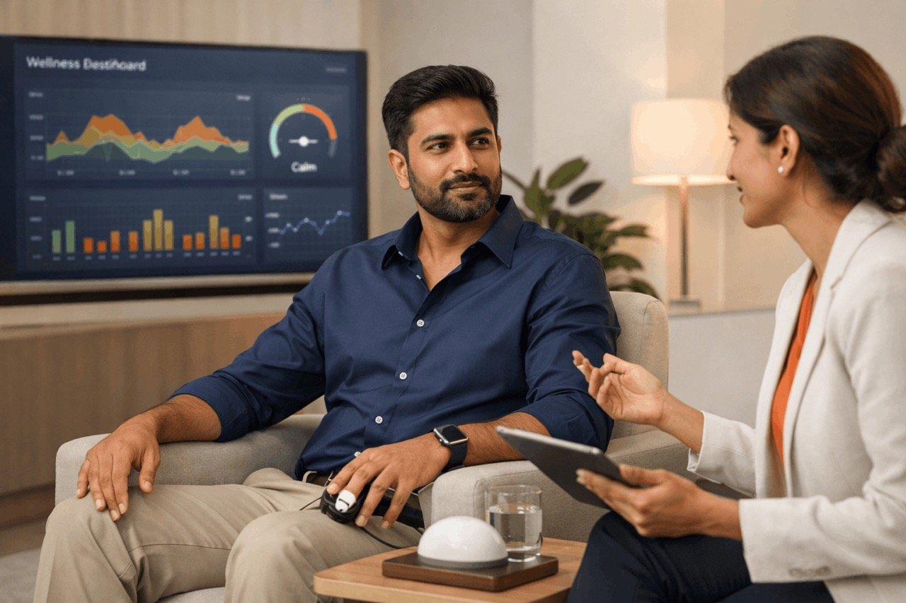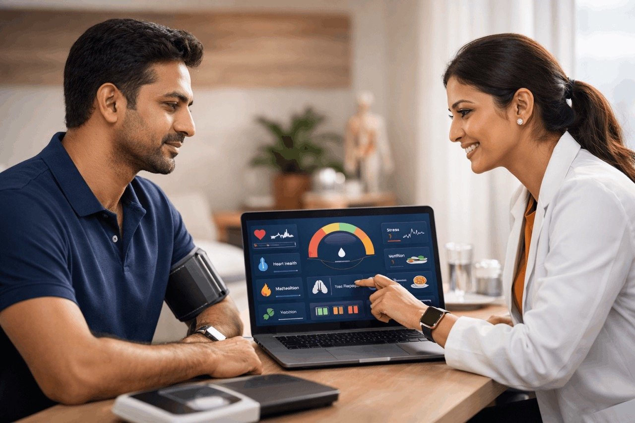 A 10-minute preventive wellness screening that reveals your cardiac health and stress risks before they become problems. Proven in the UK, trusted across the Gulf, now in India.